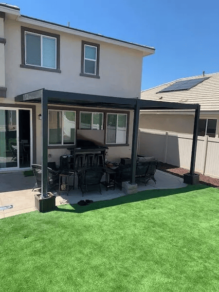 Great pergola sleek, sturdy, and fits perfectly against our wall. Looks amazing in grey and gives just the right amount of shade