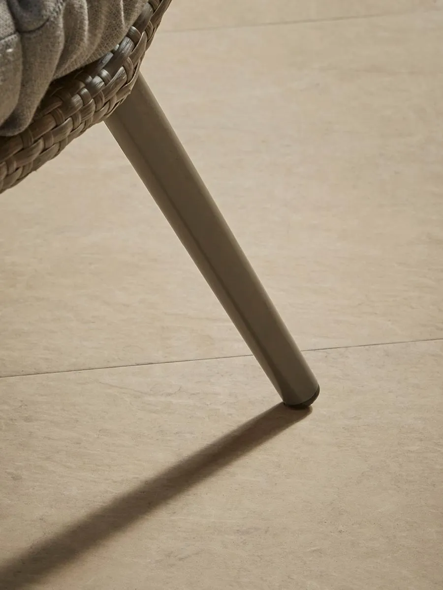 With a neutral wicker effect that sits on an aluminium frame, this occasional chair has plump cushions and headrests that are perfect for sinking into and enjoying a restful and relaxing garden space. With its large shape, theres room for both of you to enjoy a laid-back afternoon together and soak up all the summer sun thats available.
